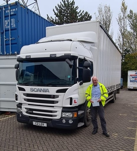 On day 3 of his three day practical course with John at Traindrive, Steve took his test at DVSA Thurrock test centre and passed with just 1 driving fault (incurred for touching the yellow line on the reverse exercise). Steve said afterwards ''Considering that I had never driven around this area before, let alone driving an 18-tonne Scania, I was well chuffed to pass with a perfect drive!''